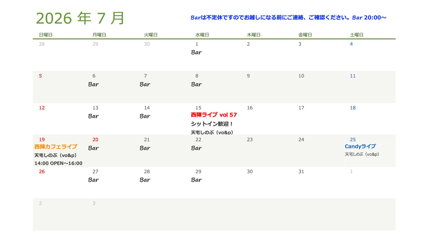 ※ライブ開催日、スタジオ利用の場合はBarは休業します